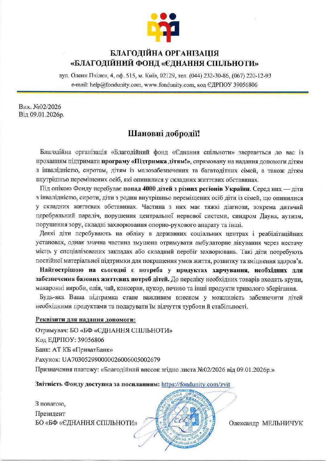 - Додаткове повідомлення про приймання від уповноважених органів заяв про участь в експериментальному проекті із закупівлі соціальної послуги з комплексного розвитку та догляду дітей з інвалідністю 23.01.2026